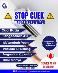 Merupakan salah satu usaha yang bergerak di bidang jual beli AC, bidang jasa bongkar pasang, service AC, maintance yang terletak di daerah Bandar Lampung. Kebutuhan akan Air Conditioning sudah bukan hal yang baru untuk saat sekarang. Untuk itu CV BERKAH MEDIA AC memberikan berbagai macam pilihan untuk merk ac anda. Kami melayani service segala jenis kerusakan pada ac , perawatan dan perbaikan selain itu juga melayani pemasangan dirumah anda.