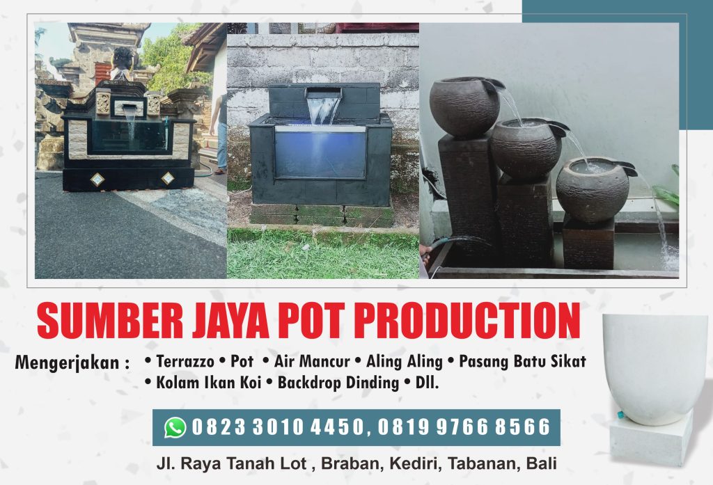 Sumber Jaya Pot Production adalah jasa profesional yang bergerak di bidang pembuatan dan pemasangan berbagai elemen dekorasi eksterior maupun interior. Dengan pengalaman dan tenaga ahli, Sumber Jaya siap mengerjakan berbagai kebutuhan seperti terrazzo pot, air mancur, aling-aling, batu sikat, kolam ikan koi, hingga backdrop dinding.