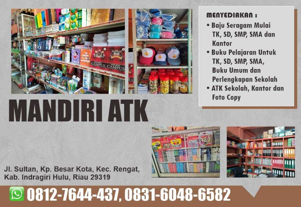 Toko mandiri Atk adalah salah satu usaha yang bergerak di bidang penjualan alat alat untuk sekolah di kab indragiri hulu