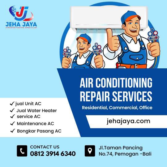 Merupakan salah satu usaha yang bergerak di bidang jual beli AC, bidang jasa bongkar pasang, service AC, maintance yang terletak di daerah Denpasar. Kebutuhan akan Air Conditioning sudah bukan hal yang baru untuk saat sekarang. Untuk itu PT. JEHA JAYA ABADI memberikan berbagai macam pilihan untuk merk ac anda. Kami melayani  service segala jenis kerusakan pada ac , perawatan dan perbaikan selain itu juga melayani pemasangan dirumah anda.
