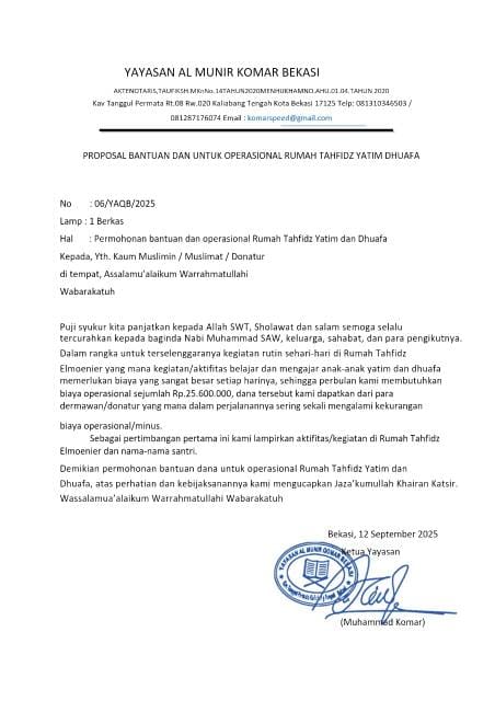 Panti Asuhan Rumah Tahfidz El Moenir di Bekasi