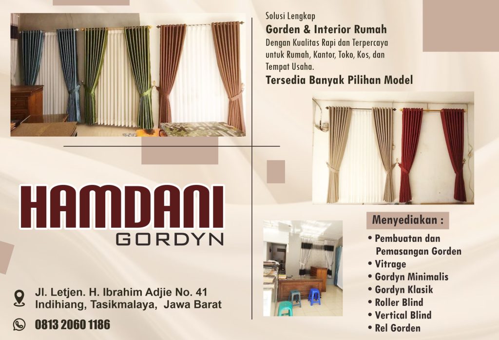 Toko Gorden Hamdani menyediakan layanan pembuatan dan pemasangan gorden untuk rumah, kantor, ruko, hotel, dan berbagai kebutuhan interior lainnya. Dengan tenaga profesional dan bahan berkualitas, kami siap membantu mempercantik ruangan Anda dengan berbagai pilihan model seperti vitrage, gorden minimalis, gordyn klasik, roller blind, vertical blind, hingga rel gorden.