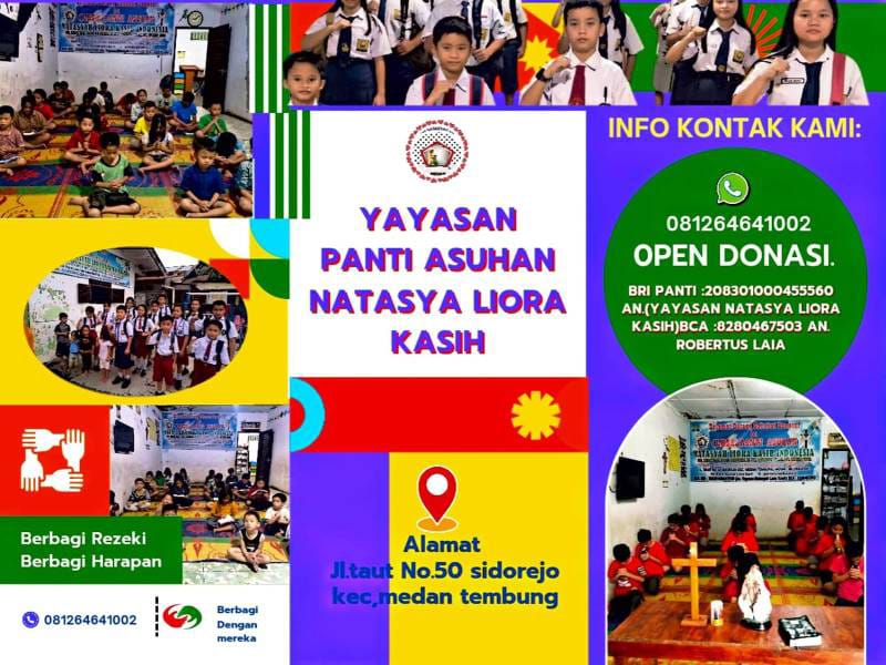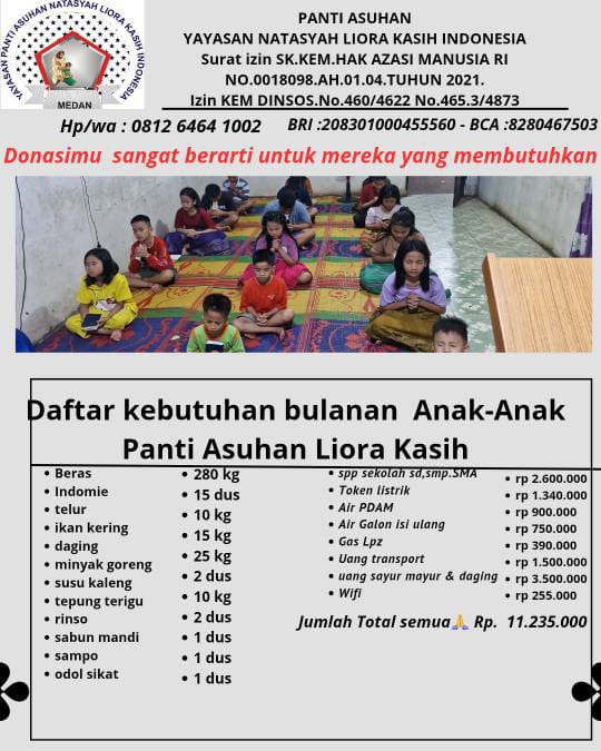 BRI panti :208301000455560 An.(yayasan Natasya Liora Kasih)BCA :8280467503 An. Robertus laia